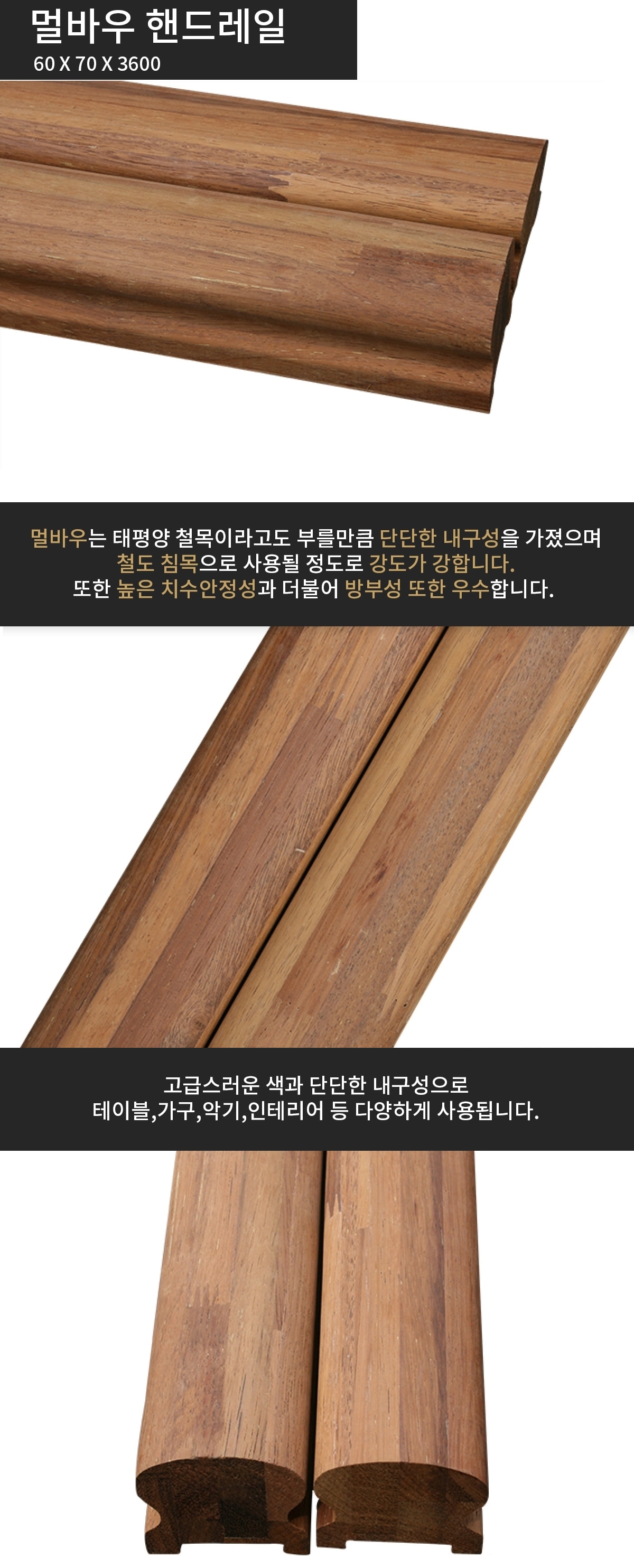 멀바우 손스침 핸드레일(식빵) > 멀바우