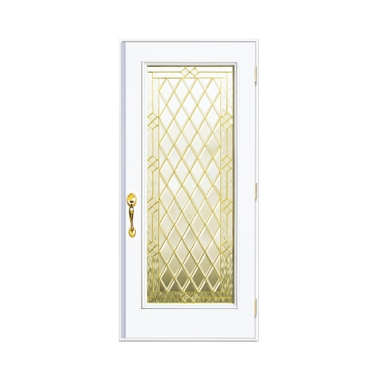 금장 격자를 넣은 불투명 장식유리는 현관의 채광을 넓히고,