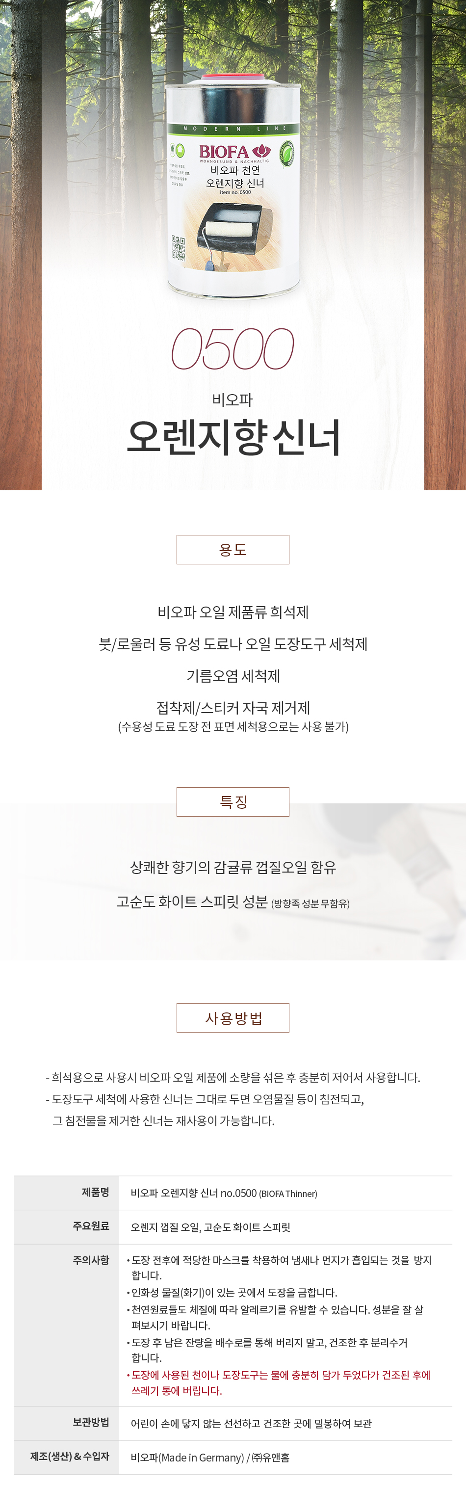 비오파 오렌지향 신너 0500 (1L)