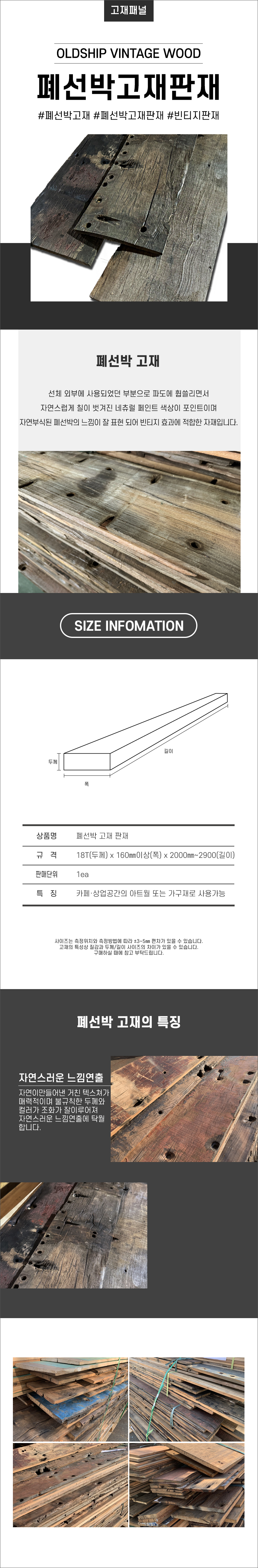 폐선박 고재 판재(S) 18t X 160 X 2000 이상 > 고재