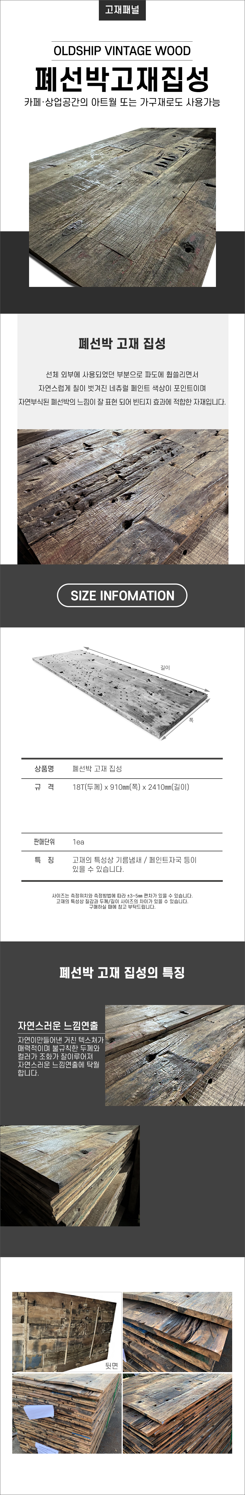 폐선박 고재 집성판 18t X 910 X 2410 > 고재