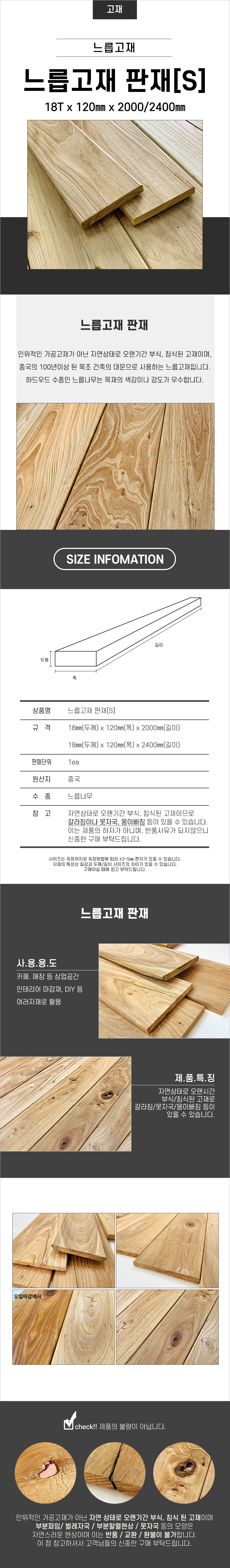 느릅 고재 판재(S) 18t X 120 X 2400 > 고재